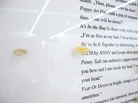 Mayo passing under strawberry jam stains, 2012 Meringues/Mayonnaise/Dear Mayo, 2013 I am my hair, 2013